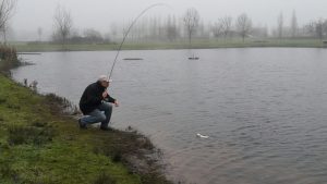 Rond half 9 was iedereen aanwezig en werd er door Léon Godijk VNV-werpinstructeur herhaald wat we vorige keer hebben behandeld. Deze keer gaat het om wat de individuele vissers tijdens deze sessie willen leren.