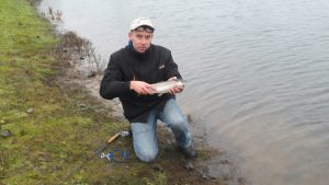 Het had die nacht gevroren en het was mistig. Het was erg koud want het water bevroor in de hengelogen. We begonnen met vissen en op kleine streamers en werden er leuke forellen gevangen.