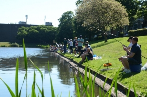 Vissen met vaste hengel.