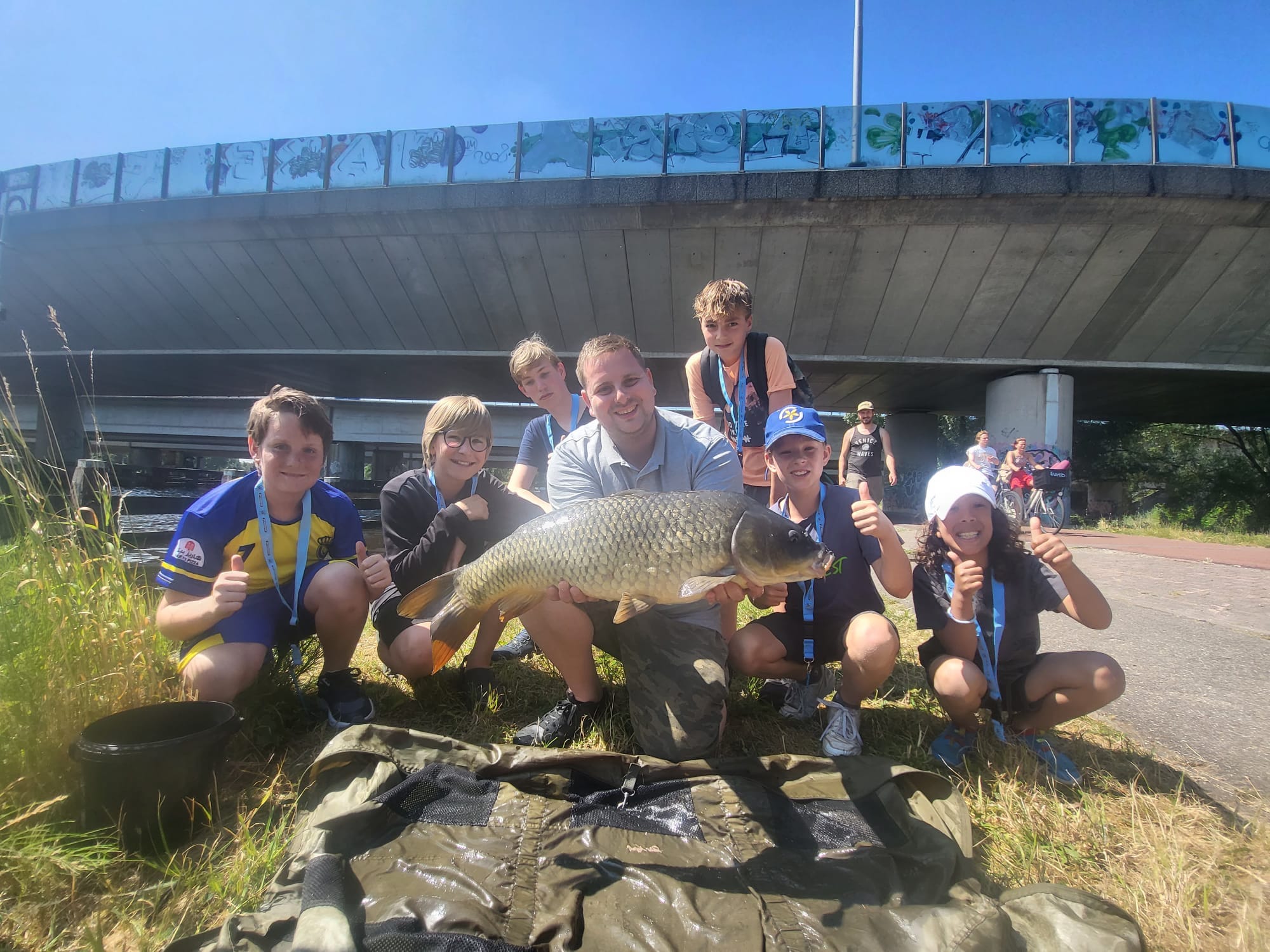 De drie jeugdvisclinics aan en op de Amstel trokken deze prachtige zomerdag de aandacht van vele wandelaars, fietsers en watersporters. De deelnemers leerden onder andere (beter) witvissen met de vaste stok en feederhengel, roofvissen vanuit een stoere boot en verschillende onderdelen van het karpervissen. Voor velen werd het een onvergetelijke dag, zie https://www.sportvisserijmidwestnederland.nl/actueel/17484/jeugdvisdag-amsterdam-groot-succes.html deze dag werd begeleid door een 30-tal vrijwilligers/instructeurs maar ook niet te vergeten sponsoren voor de lunch (Jumbo zuid), het maaien van de graskant (gemeente Amsterdam) voor een veilige situatie voor de kinderen, Ottenhome voor het beschikbaar stellen van de reddingsvesten en op het laatste moment Goois Hengelsport uit Naarden die alle roofvismolens opgepoetst had en voorzien van nieuwe dynemalijn (gesponsord), Geert nog bedankt daarvoor. Leden van HSV Hilversum kijk ook nog even naar de uitnodiging van 9 September het 110-jarig jubileum de VIS-familiedag, wel even opgeven om deel te nemen.